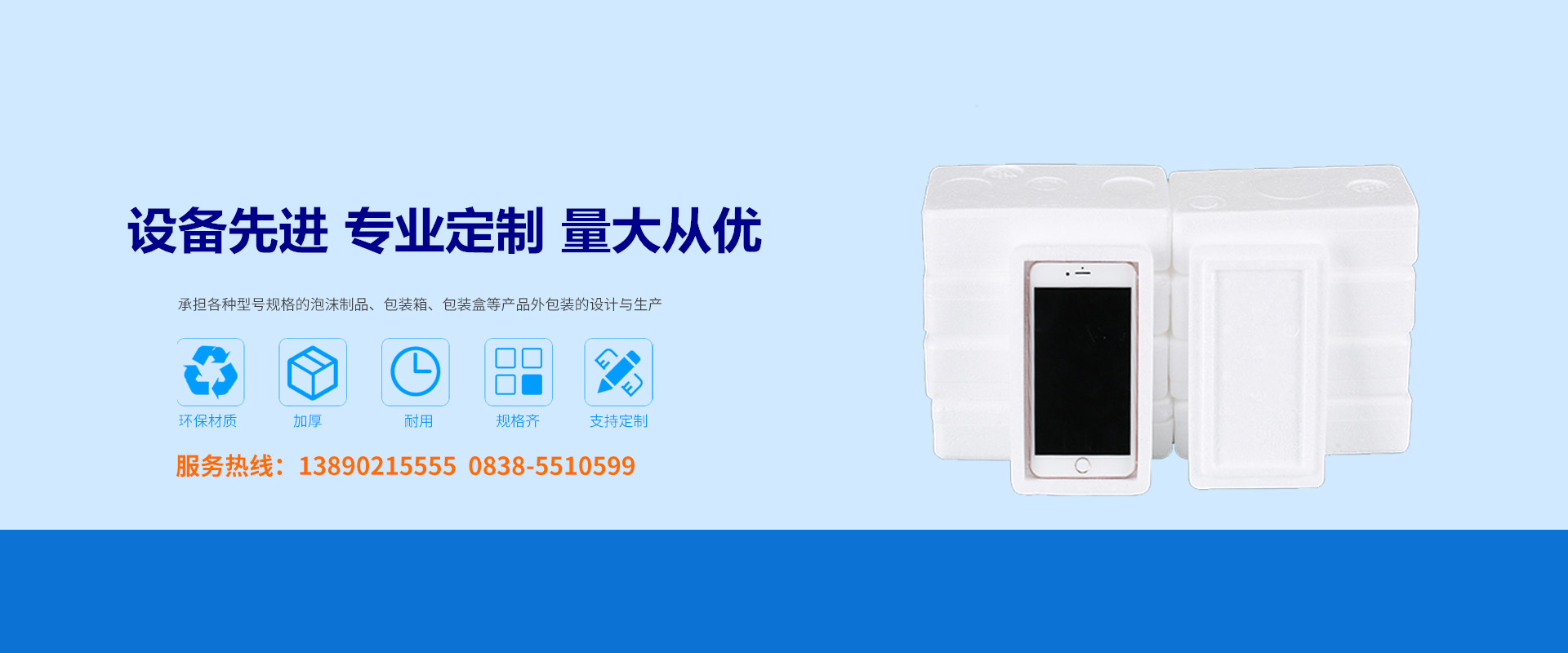 我公司是一家集設計、生產、銷售、服務于一體的大型泡沫包裝企業。擁有多年制作經驗、有雄厚的技術力量。公司設四個職能部門和4個生產車間,承擔各種型號規格的泡沫紙品的設計與生產、并批量制作各種規格包裝箱、包裝盒等各種產品外包裝,主要用于化工、醫藥、電子產品、食品等其他產品外包裝。產品優質,綠色環保,質量穩定可靠。